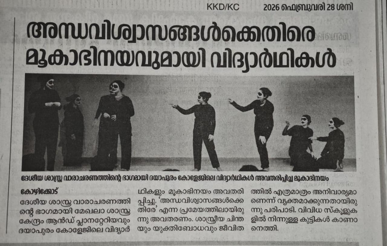 ദേശീയ ശാസ്ത്രവാരാചരണത്തിന്‍റെ ഭാഗമായി കോഴിക്കോട് മഖലാ ശാസ്ത്ര കേന്ദ്രത്തില്‍ ദയാപുരം കോളേജ് വിദ്യാർത്ഥികള്